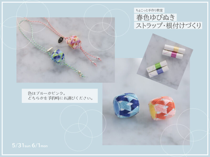 春色のカラフルな「ゆびぬき」を作って、ストラップや根付けに仕立てませんか。
