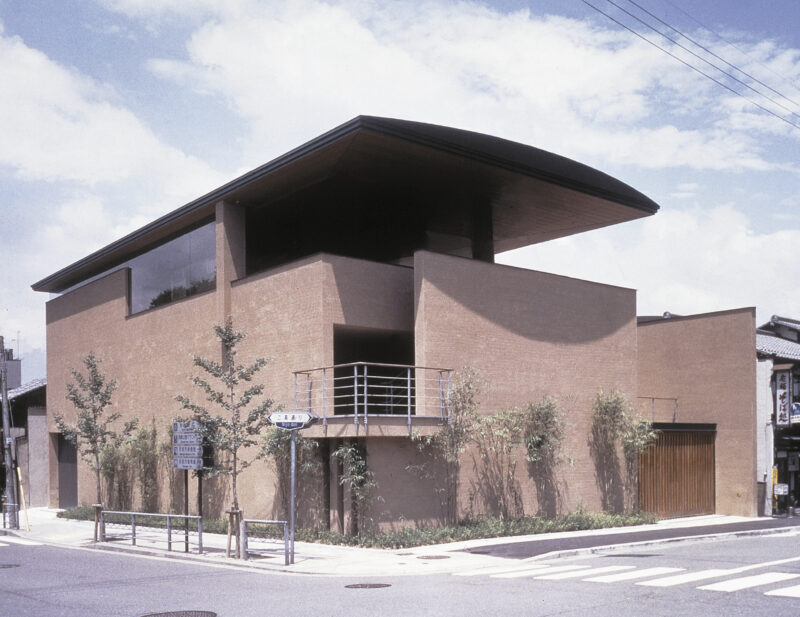 中央部が吹き抜けになった地上3階、地下2階のモダンな建物で、最上階には数寄屋建築の名匠・中村外二の遺作として知られる茶室「古香庵」があります。